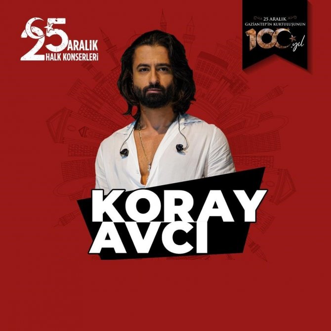 Cumhurbaşkanı Recep Tayyip Erdoğan'ın tensipleriyle Cumhurbaşkanlığı himayelerine alınan Gaziantep'in Kurtuluşu'nun 100'üncü Yılı Etkinlikleri kapsamında Kültür ve Turizm Bakanlığı katkılarıyla, Gaziantep Valiliği, Gaziantep'i Geliştirme Vakfı'nın (GAGEV) koordinasyonunda, Büyükşehir Belediyesi Kültür ve Turizm Daire Başkanlığı organizasyonunda 25 Aralık Halk Konserleri tüm hızıyla sürüyor. Esat Kabaklı'nın 7 taşra ilçede verdiği konserlerle başlayan heyecan Zara ve Oğuzhan Koç konserleri ile sürerken Türk Rap Müzisyeni ve Söz Yazarı Eypio ile Şarkıcı Koray Avcı'nın sahne almasıyla taçlanacak. 17 Aralık Cuma Günü saat 19.00'da Şahinbey Kapalı Spor Salonu'nda gerçekleşecek konserle sanatçılar Gazi şehirli hayranlarıyla buluşacak.