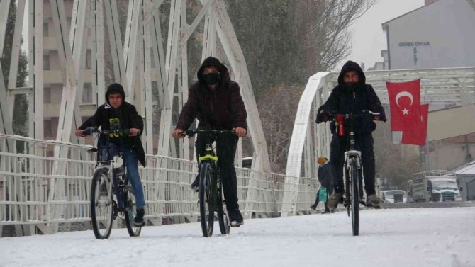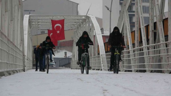 Ardahanlılar Cumhuriyet Bayramında kar sürpriziyle karşılaştı.