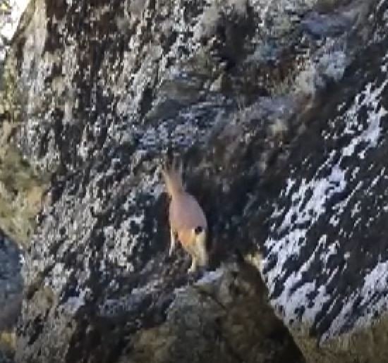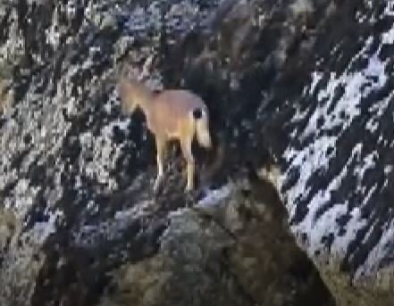 Tunceli'de görüntülenen 3 ayaklı yaban keçisinin kayalara tırmanma azmi görenleri şaşırttı.