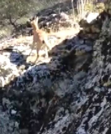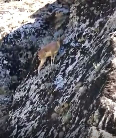 Tunceli'de görüntülenen 3 ayaklı yaban keçisinin kayalara tırmanma azmi görenleri şaşırttı. Keçi uzun uğraşlardan sonra kayalık alandan çıkmayı başararak ormanlık alanda gözden kayboldu.