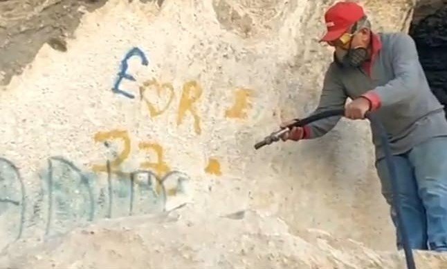 Türkiye'nin en önemli turizm merkezlerinden biri olma yolunda ilerleyen, bünyesindeki 3 bin yıllık tarihi eserler ile görenleri mest eden Frig Vadisi'ndeki tarihi eserlerin üzerine sprey boya ile yazılan yazılar özel bir teknik kullanılarak yapılara zarar vermeden silinmeye başlandı.