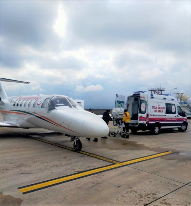 Van Yüzüncü Yıl Üniversitesi'nde takip edilen 3 günlük bebek, özellikli bir ameliyat için Sağlık Bakanlığı uçak ambulansı ile Bursa'ya getirildi.