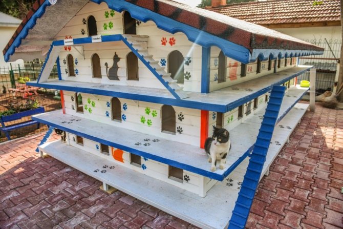 3 katlı 64 odalı ‘kedi apartmanı’ ilgi çekiyor
