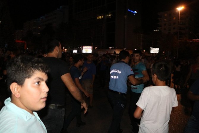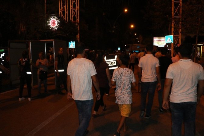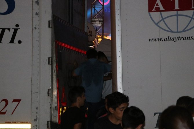 Öte yandan, konser alanı yanında bulunan iki tır arasından bazı vatandaşlar sahneye çıkmaya çalışırken, tırların tepesinin de bulunan güvenlik vatandaşlara engel oldu.