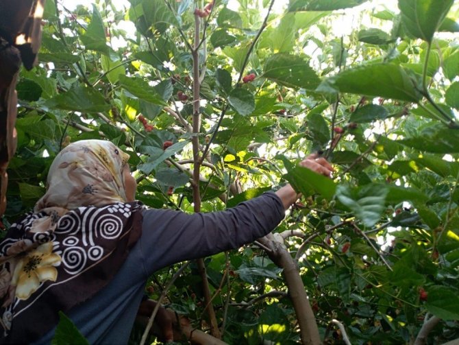 Ev hanımı olduğunu belirten Hatice Öz, "30 yıldır bahçemde karadut , ceviz, vişne, ayva, armut ve kızılcık ağaçlarım var. Bu ağaçlardan kışın yiyeceğimiz reçelleri yapıyorum. Hepsi organik ve kendim topluyor kendim reçelini yapıyorum. Karadut bağışıklık sistemini güçlendirir. Ayrıca karadutun faydası saymakla bitmez. Sadece reçel değil, keçilerimden de peynir yapıyorum. Süt, yoğurt, yumurta, tereyağı ve birçok market ve pazar sebzesini kendim yetiştiriyorum. Bahçemde Çilek, marul, domates, yer elması gibi bir çok şey var. Ayrıca peyniri salamura yapıp satıyor bu şekilde aile okonomime katkıda bulunuyorum. Karadut ağacım yılda üç kez meyve veriyor. Verimi çok güzel. Ağaçların bakımını eşim yapıyor. Onları budayıp suluyor ve ilkbaharda ilaçlıyor. Peynirin kilosunu 40 TL’den satıyorum. Müşteri memnuniyeti çok önemli benim için. Onun için hazırlarken her şeye dikkat ediyorum. Müşterilerim de peynirlerimi beğeniyor her sene yaz gelmeden peynir yap diye bana geliyorlar"diye konuştu.
