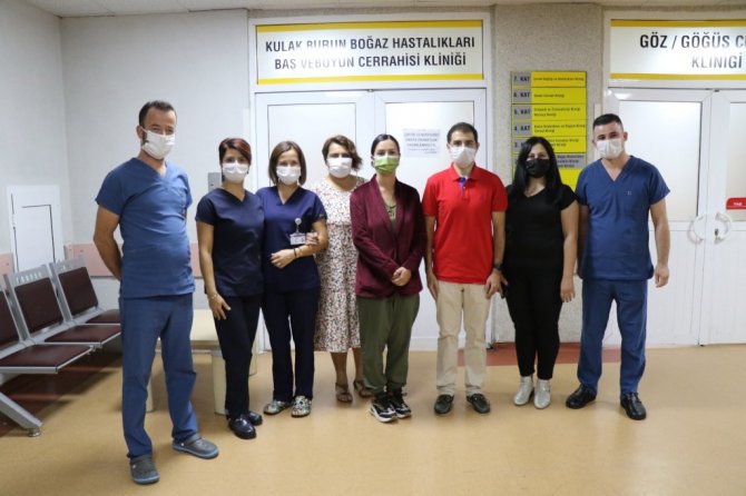 "Ben de 30 yıldır sağlık camiası içinde çalışıyorum hemşireyim. Doktor beyin dediği gibi teşhisim konulmuştu. Doktorumuzun bu ameliyatı yaptığını öğrenince bir haberde okudum hastadan dolayı doktorumuza ulaştım. Kendisi bana her konuda yardımcı oldu ve beni ikna etti. Kapalı ameliyatı deneyeceğini herhangi bir komplikasyon gelişirse açığa döneceğimizi bütün konularda bilgilendirdi. İyileşme sürecim çok iyi herhangi bir sıkıntım yok. Çok korkarak gelmiştim şu an çok mutluyum. Kulağımda nabız sesi vardı aynı zamanda işitme kaybım vardı. Eşim ve ailem evde çok yüksek sesle televizyon izlediğimi söyledi. Bu şikayetler üzerine Balıkesir şehir hastanesine gittim. Orada bu şikayetlerimi söyledim. MR çekildi MR sonucunda teşhis konulamadı. Üniversiteye gittim teşhis konuldu. Nadir görülen bir tümör olduğunu öğrenince doktor arayışına gittim ve bir şekilde Deniz hocamı buldum. Allah razı olsun şu an çok mutluyum. İlk hocamız bu hastalığı anlattığında normal bir vaka olarak düşündüm. Sonra nadir görülen bir tümör olduğunu öğrendim. Doktor beyin dediğin nadir görüldüğü için tedavisi de nadir yapılıyor. Herkesin her birimde ameliyat yapamayacağı için ister istemez panikledim. Başka doktorlarla da görüştüm. Deniz hocamın benim tanımda ameliyat yaptığını duyunca hiç tereddüt etmeden kendisine ulaştım. Mutlu bir şeklide buradan ayrılacağım. Herkese emekleri için teşekkür ediyorum."