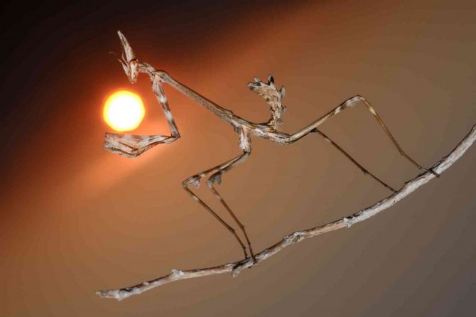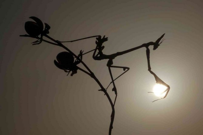 Kahramanmaraşlı doğa fotoğrafçısı, halk arasında "peygamberdevesi" olarak bilinen "mantidae" böceğinin ilginç karelerini fotoğraflıyor.