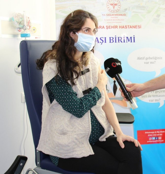 Ankara Şehir Hastanesi'nde Kadın Doğum Uzmanı olarak görev alan ve sağlık çalışanı olduğu için aşılama programında öncelik hakkı bulunan Zeynep Aslı Kaplan, "Şuan 33 haftalık gebeyim ve ilk aşımı 1 ay önce olmuştum bu ikinci dozum. Gebelikte Covid-19'un ağır geçme ihtimali olduğu için ve hem kendimi hem de çocuğumu riske atmak istemediğim için bu konudaki güncel tüm yayınları okudum. Aşıların günümüzde güvenli oldukları bilindiği için hiç tereddüt etmeden ilk gün randevumu alarak aşımı yaptırdım. Biliyoruz ki gebelerde bağışıklık anneden bebeğe geçer. Yapılan son çalışma ve vakalarda, anne kanından bebek kordon kanında da koruyucu maddelere rastlandığı için; hem doğumdan sonra kendimi hem de bebeğimi korumak için koronavirüs aşısı olmaya karar verdim" şeklinde konuştu.
