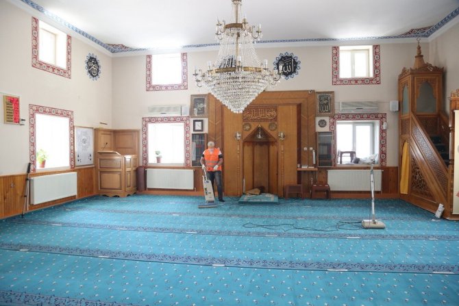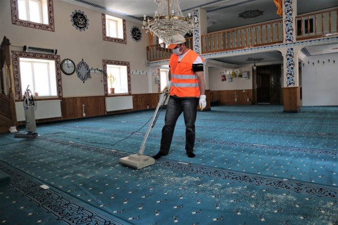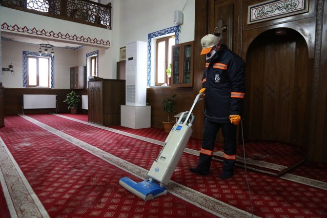 Sivas Belediyesi, kent merkezinde bulunan tüm camilerin temizlik ve dezenfektan işlemini yapıyor.