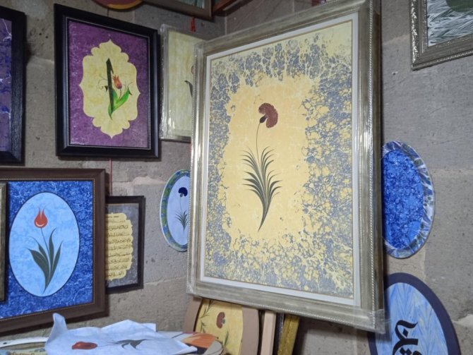 Kayseri'de 40 yaşından sonra ebru sanatı ile uğraşmaya başlayan Ahmet Kurt öğrendiği sanatı aşkla yaptığını söyleyerek, "5 sene gece gündüz çalışarak...