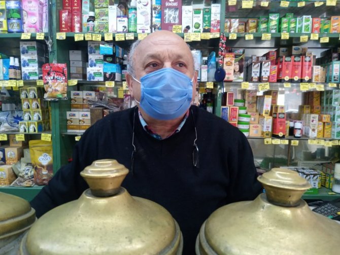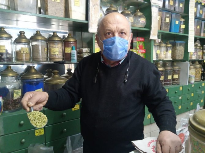 41 yıldır kent merkezinde aktarlık yapan Tahir Buyurucu, bazı ürün ve bitkilerin korona virüse iyi geldiğini ve mikrobu öldürdüğünü açıkladı.