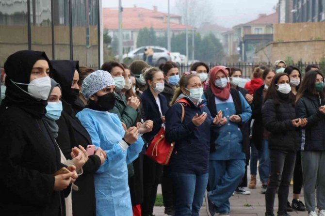 Sakarya'da korona virüse yakalanarak kaldırıldığı hastanede hayatını kaybeden 42 yaşındaki diş hekimi Veysel Erdem Uzun'un cenazesi hastane önünde gerçekleşen...