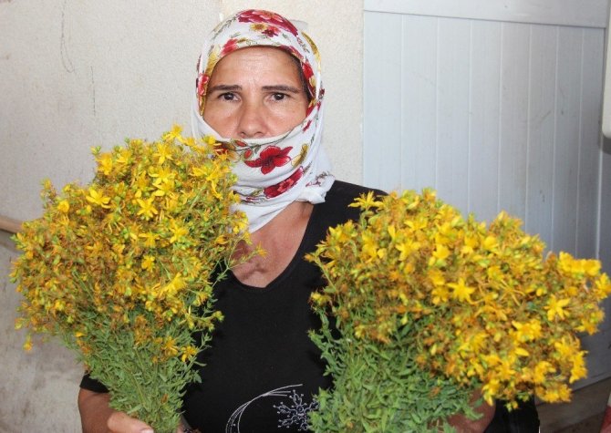 Menteşe Halk Pazarı’nda kantaron otu satışı yapan Elif Tolkay, “Mide ağrısına, yanığa, yaraya, pişiğe, bıçak kesmesinde iki günde yarayı kapatıyor. Günlük bazen alan çok oluyor, bazen olmuyor. Çiçeklerini bir kavanoza koyuyorsunuz. İçine çiçeklerin üzerine çıktığı miktarda zeytinyağı katıyorsunuz. 40 gün güneşte veya gölgede bekletiliyor. Altın sarısı olunca ister iç, ister yara-bereyi sür” dedi.