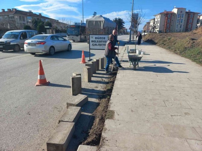 Düzce'de kış ayları öncesinde çalışmalar hızlandırıldı. Düzce Belediyesi Fen İşleri Müdürlüğü ekipleri ihtiyaçlar doğrultusunda çalışmalarını sürdürüyor. Bu kapsamda ekipler 5 mahallede aynı anda çeşitli çalışmaları sürdürmeye devam ediyor. Bu kapsamda Çiftepınarlar, Karahacı Musa, Koçyazı, Burhaniye ve Camikebir Mahalleleri'nde onarım gerektiren bordür, kaldırım taşı, asfalt ve küp taşların onarımları tamamlanma aşamasına geldi.