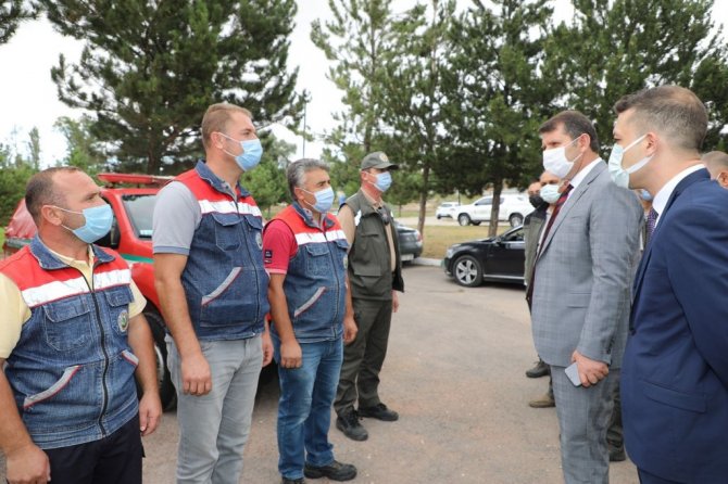 Sivas Valisi Salih Ayhan, Orman İşletme Müdürlüğünü ziyaret ederek Muğla, Mersin, Adana, Antalya ve Kahramanmaraş'ta yangınlarla mücadele eden ekipler ile bir araya geldi. Vali Salih Ayhan daha sonra 50 bin dönüm proje alanına sahip Merkez İşhan, Dört Eylül, Tavra Deresi Projesi'nin Dört Eylül mevkisindeki 7 bin 500 dönümlük geniş yapraklı ağaçlandırma sahasında da incelemelerde bulundu. Orman İşletme Müdürü Sefa Duman'dan bilgi alan Vali Ayhan, burada yaptığı açıklamada Sivas'ın iklimine, toprak yapısına ve bölgesel konumuna göre tür dikiminin yapıldığını söyledi.