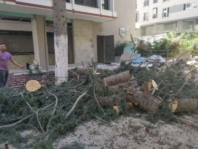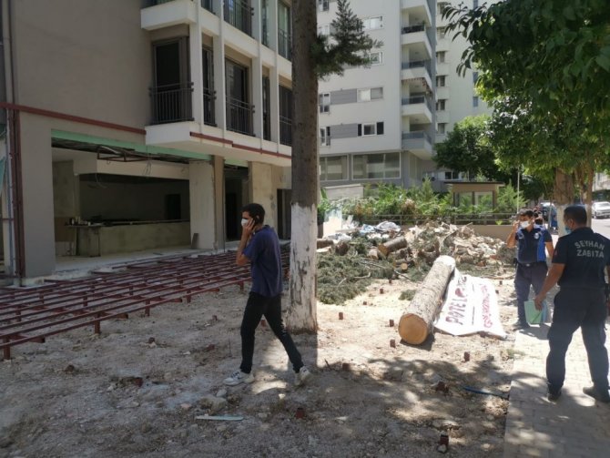 ADANA (İHA) – Adana'da bir iş yerinin önündeki 50 yıllık ağaç izinsiz kesildi.
