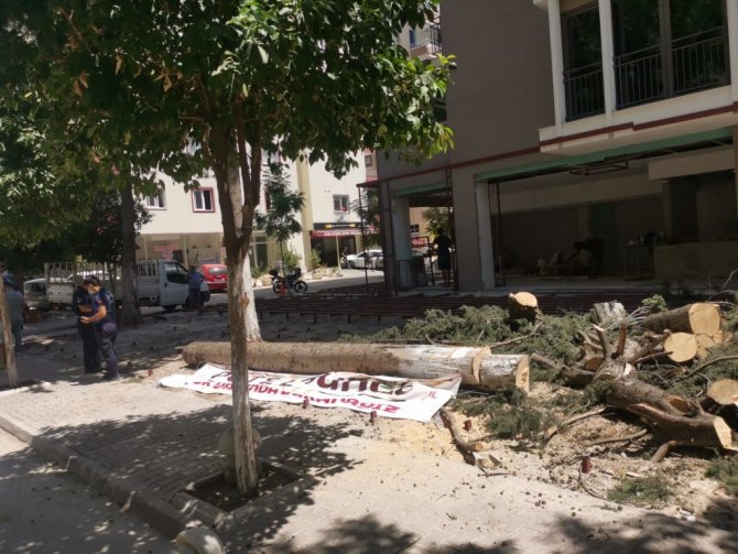 Ağacın 50 sene önce mahalleli tarafından dikildiği, işletmecinin ağacı keserek o bölgeye masa ve sandalye koyacağı öne sürüldü.
