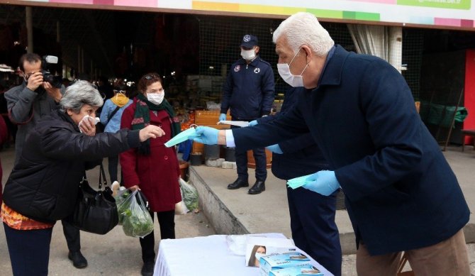 Muğla Büyükşehir Belediyesinin korona virüs salgını ile ilgili il genelinde sürdürdüğü mücadeleye devam ediyor. Salgın ile mücadelede en etkin yöntemlerden birisi olan dezenfekte çalışmaları il genelinde devam ederken diğer yandan vatandaşların en önemli ihtiyaçlarından birisi olan maskelerin dağıtımı sürüyor. Muğla Büyükşehir Belediyesi salgının görülmeye başladığı ilk günden bu güne 500 bin adet maske dağıtımı gerçekleştirdi. 500 bin adet maske halk pazarlarında, toplu taşıma araçlarında, eczanelerde, veteriner kliniklerine, klinik sahibi doktorlara ve sanayi esnafına dağıtıldı.