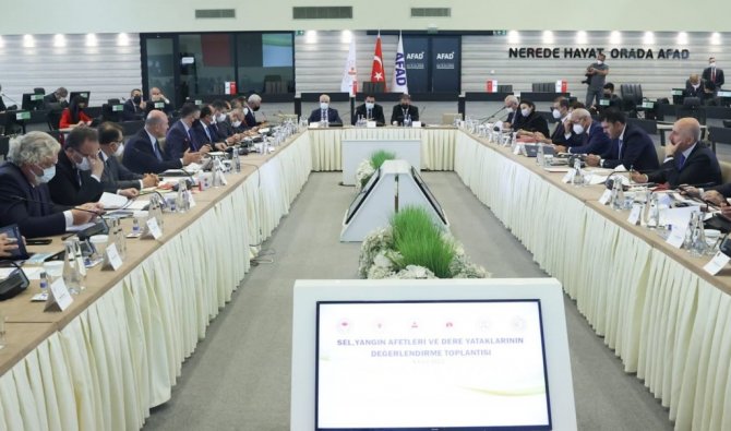 Son dönemde meydana gelen sel ve yangın afetlerinin sonuçları, dere yatakları ve bundan sonra yaşanabilecek afetler karşısında alınacak önlemleri değerlendirmek üzere "Sel, Yangın Afetleri ve Dere Yataklarının Değerlendirme Toplantısı" 6 bakanın katılımı ile başladı. AFAD Başkanlığı binasında gerçekleşen toplantı basına kapalı olarak gerçekleştirildi.