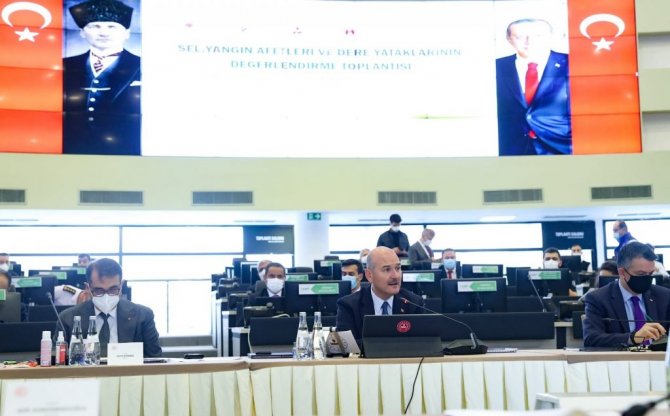 Sel, Yangın Afetleri ve Dere Yataklarının Değerlendirme Toplantısı, İçişleri Bakanı Süleyman Soylu, Hazine ve Maliye Bakanı Lütfi Elvan, Çevre ve Şehircilik Bakanı Murat Kurum, Tarım ve Orman Bakanı Bekir Pakdemirli, Ulaştırma ve Altyapı Bakanı Adil Karaismailoğlu ve Enerji ve Tabii Kaynaklar Bakanı Fatih Dönmez'in katılımı ile başladı.