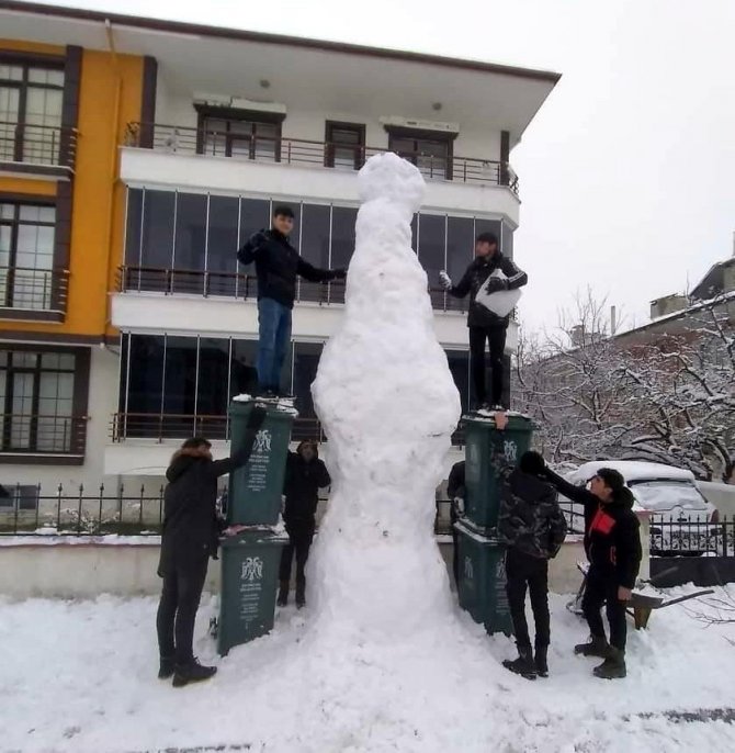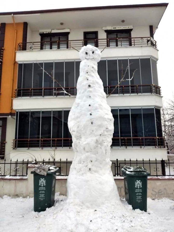 Erzincan'da 6 metre uzunluğunda dev kardan adam yaptılar.