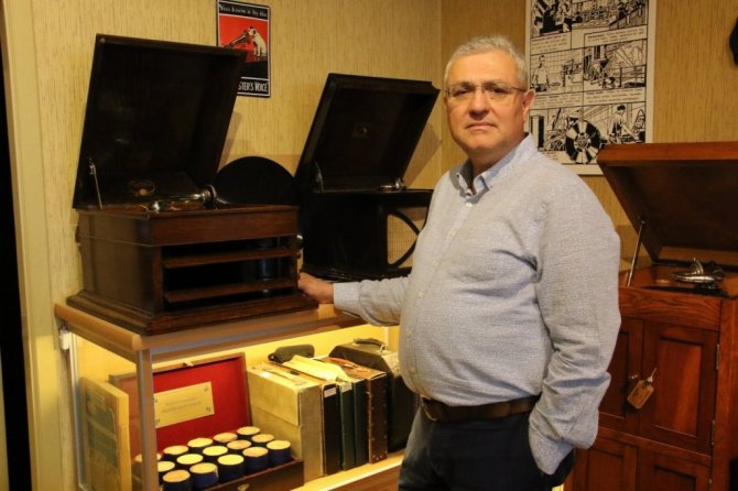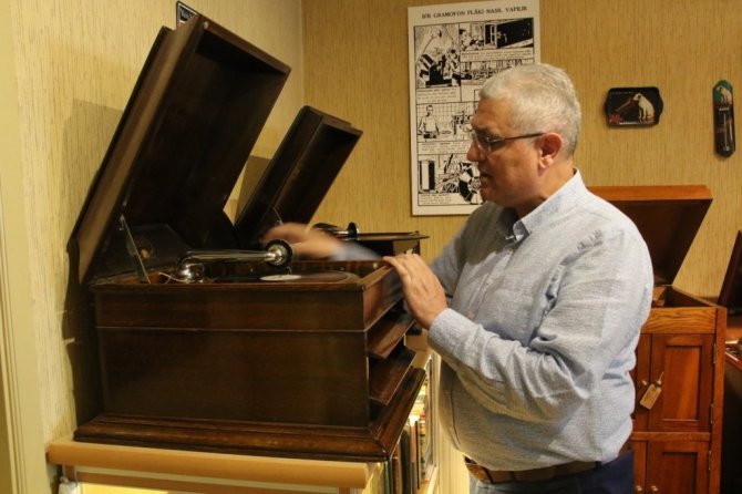 Koleksiyonuyla ilgili bilgiler paylaşan Kara, "Şu anda koleksiyonumda 165 tane tamamı çalışır ve orijinal durumda gramofon var. Değişik ülkelerden bir kısmını kendim beraber olarak getirdiğim bir kısmı da yurtiçinden değişik yerlerden aldığım. Türk ses tarihinin ilk plakları olan plaklardan bunlardan 24 tane var. 1895 yılında İstanbul'da kayıtları yapılmış Türk milletinin ilk ses kayıtları. Çok çok kıymetli her beste tek kopya olduğu için geleceğe taşımak açısından çok çok önemli bence. Yine plaklara geldiğimde 6 bin 500 civarında taş plak var. Taş plaklar 1895 ile 1965 yılları arasında üretilen plaklardır. Çünkü son zamanlarda plak modası var ve insanlar tüm plakların taş plak olduğunu zannediyor. Gramofonlarda çalınabilen plaklara taş plak diyoruz, pikaplarda çalınanlarda long play ya da 45'lik diyoruz. Gramofonlarda çalınan taş plaklar, pikaplarda ya da elektrikli pikap çalarlarda çalınabilir ama pikaplarda çalınan pikaplar gramofonlarda çalınamazlar" dedi.