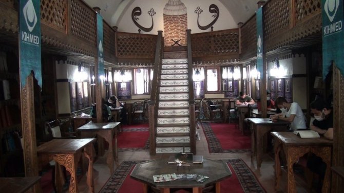 Pandemi döneminde kütüphanelerde yaşanan sürü sıkıntısından dolayı tarihi tekke gelerek derslerini çalıştıklarını söyleyen öğrenciler ise, sunulan kaynak kitap ve imkanlardan dolayı emeği geçenlere teşekkür ettiler.