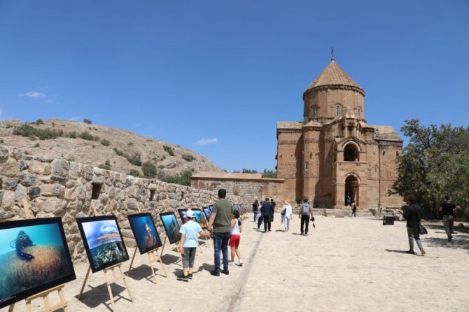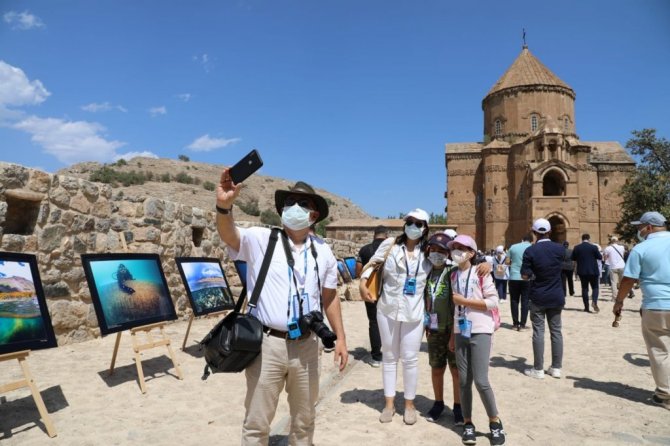 Akdamar Kilisesi ve ada çevresinde gezen misafirler, hatıra fotoğrafları çekilerek Bitlis'in Ahlat ilçesine hareket etti.