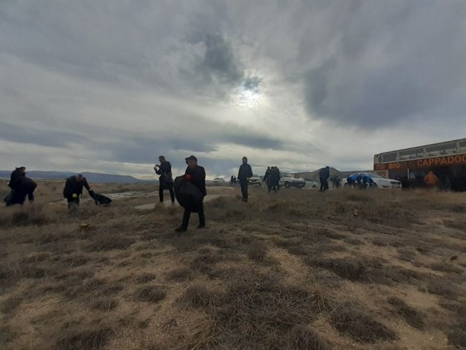 "Daha Temiz Bir Kapadokya" için temizlik çalışmalarına katılan gönüllüler ilk olarak Big Bus otobüsle Devrent Vadisine geldi. Burada eldivenlerini giyen gönüllüler ellerine aldıkları çöp torbaları ile vadiye dağıldı.