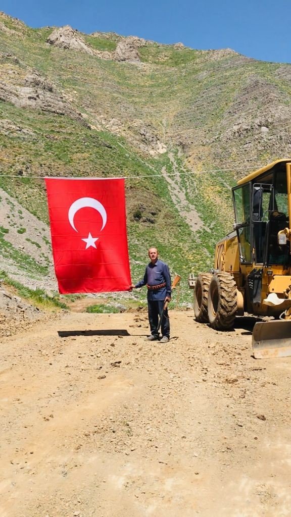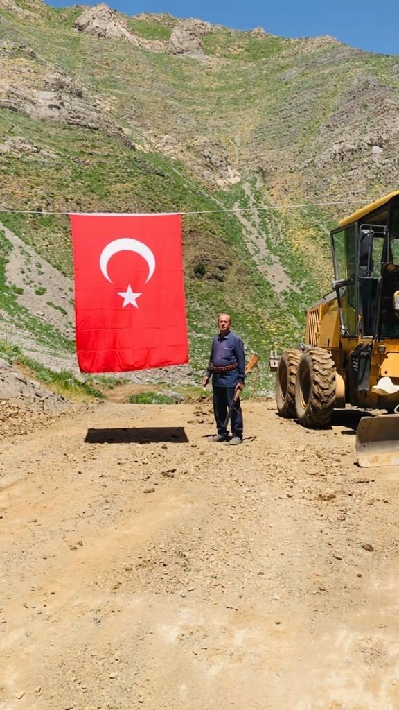 7 yıl önce yapımına başlanan yol tamamlandı, muhtar açılışı Türk bayrağı ile kutladı