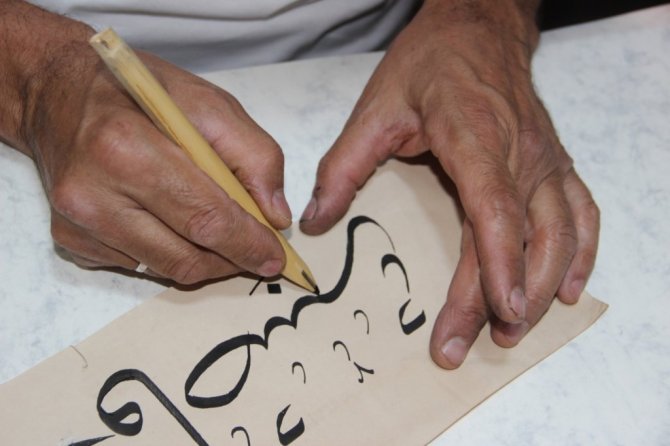 Afyonkarahisar'da 15 yaşında babasından öğrendiği hat sanatını günümüze kadar sürdüren ve yeni yeni kursiyerler yetiştiren emekli Öğretmen Cafer...