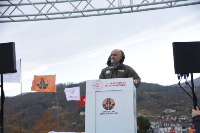 Devam eden çalışmalar hakkında ise, "Bugün de hep birlikte yıkılan köprülerimizden; Ayancık Terminal Köprüsü'nü açıyoruz. Diğer çalışmalarımıza aynı hız ve yoğunlukta devam edeceğiz. Kumluca 2 Köprüsü'nü, Kavlakdibi Köprüsü'nü önümüzdeki günlerde, Şevki Şentürk Köprüsü'nü 20 Aralık'ta ve Azdavay Köprüsü'nü de 30 Aralık'ta tamamlayıp, halkımızın hizmetine sunacağız. Köprülerimizle birlikte Kastamonu'da; Kastamonu-İnebolu Yolu ve Devrekani-Çatalzeytin Yolu, Devrekani - Bozkurt yolları ile birlikte, Ağlı-Azdavay ayrımı-Şenpazar yolunun muhtelif kesimlerinde yol yapım çalışmalarımız devam ediyor. Sinop'ta; köprülerle birlikte, Boyabat-Ayancık arasında dolgu çalışmaları ile birlikte, İkisu Köprüsü ile birlikte Yenikonak arası, Ayancık-Türkeli arası, Sinop-Ayancık arası ve köy yollarında onarım ve yapım çalışmaları aynı şekilde devam ediyor. Bartın ilimizde ise; Kavlakdibi, Kirazlı, Kumluca-1, Kumluca-2 yapımı ile birlikte Kozcağız-Kumluca-Abdipaşa Yolu sel hasarları yapım işlerimiz büyük bir hızla sürüyor" diye konuştu.