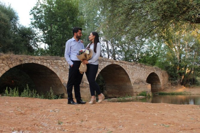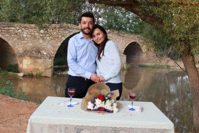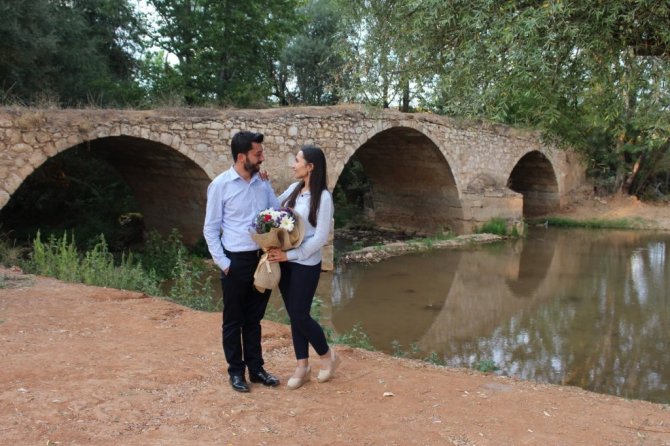 Denizli'de bulunan 800 yıllık tarihe sahip Hançalar Köprüsünde bir evlilik teklifine sahiplik yaptı.