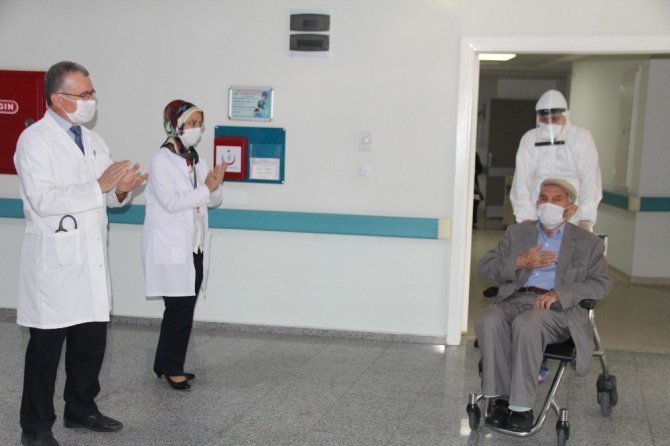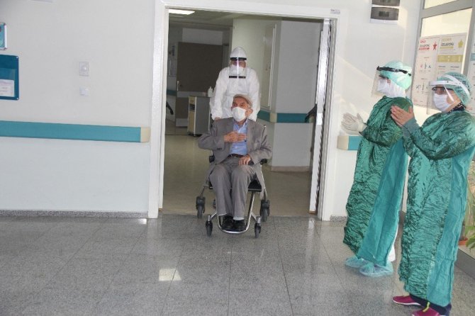 Daha sonra 10 gün tedavi gördükten sonra Korona virüs (Covid-19) yenen 83 yaşındaki Ramazan Daşdemir ve büyük risk alarak babasının başında refakatçi olarak 10 gün kalan Hacer Daşdemir, alkışlarla ambulansa bindirilerek evlerinde 14 gün daha karantina geçirmek üzere uğurlandılar.