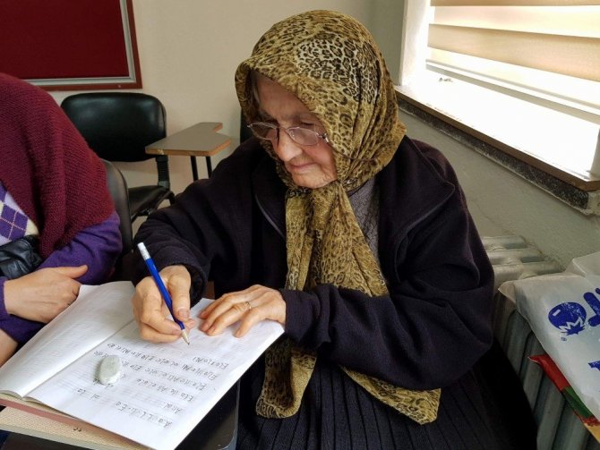 Cumhurbaşkanı Recep Tayyip Erdoğan ve eşi Emine Erdoğan tarafından başlatılan ‘Okuryazarlık Seferberliği!ne Nazilli’den dahil olan 84 yaşındaki Hacer Büyükyapıcı, kurslara kızı ile beraber gelerek oku...