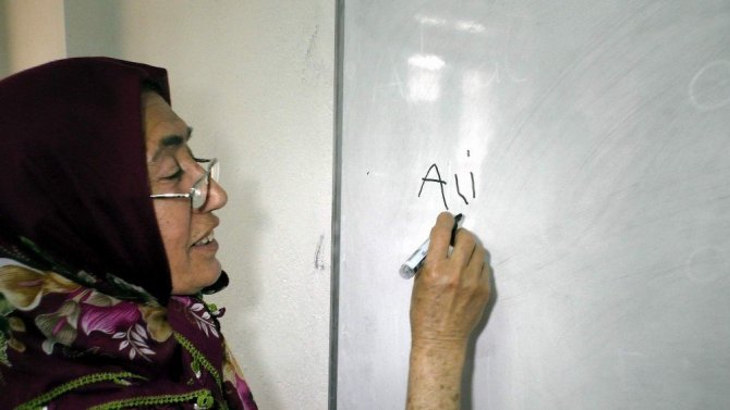 Nazilli Halk Eğitimi Merkezi ve Akşam Sanat Okulu’nda başlayan okuma yazma kursları büyük ilgi görüyor. Yaşları 50’nin üzerinde olan kadınların büyük ilgi gösterdiği kurslara kızı ile gelen 4 çocuk, 5 torun sahibi 84 yaşındaki Hacer Büyükyapıcı, okuma ve yazma azmiyle kursiyerlere örnek oldu. Kaymakam İbrahim Küçük, ilçe Milli Eğitim Müdürü Hıdır Dağaşan ve Şube Müdürü Latif Akgün’ün ziyaret ettiği sınıfta kursiyerler, iki günde öğrendikleri bilgileri misafirleri ile paylaştı. Kimi kursiyerin ilaç reçetesini okuyamadığı için, kimi kursiyerin bineceği minibüsün nereye gideceğini bilemediği için, kimi kursiyerin torununa ve çocuklarına muhtaç olmamak için, kimisinin de okumaya meraklı olmasından dolayı katıldığı okuma yazma kurslarının ilçe genelinde atarak devam ettiği belirtildi.