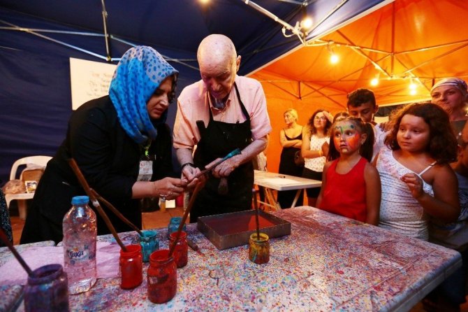 Gazeteci-Yazar Hıncal Uluç, fuarı gezdi ve Sanat Sokağı’nda İzmir Sanat Atölyesi’nin standında ebru yaptı. Ebru sanatına gönül verdiğini ve çok önemsediğini anlatan Uluç, yaptığı çalışma ile objektiflere poz verdi. Fuarı değerlendiren Hıncal Uluç, “Benim bir tek değerlendirme ölçüm var. Fuarı ben bu akşam gerçekten çok güç gezdim. İşte ölçüm bu. İzmir Fuarı’nın sokaklarında, yollarında sanki bir otobüs içindeymiş gibi ‘lütfen’ deyip ilerleyebiliyorsan; o fuar başarıya ulaşmıştır. İzmir Enternasyonal Fuarı eski günlerine dönüyor diyebilirim” diye konuştu.