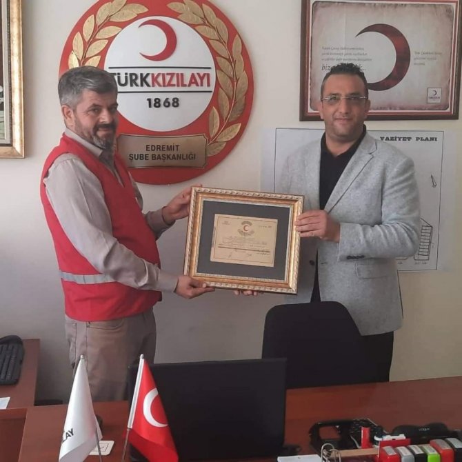 Kızılay Edremit Şube Başkanı Himmet Bora böyle anlamlı bir bağışta bulunan Erkan Özdemir'e teşekkür etti.