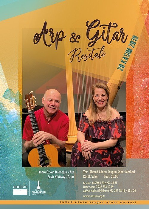 Yonca Özkan Bilenoğlu ve Bekir Küçükay, Arp ve Gitar Resitali konserinde farklı kültürlerde yetişen bestecilerin orijinal eserlerini ilk kez dinleyicilerle buluşturacak. İçlerinde birçok türün ögelerini barındırarak günümüz dünya müziği tarzında yazılan eserler, 20 Kasım Çarşamba saat 20.00’de Küçük Salon’da İzmirli sanatseverlere geniş bir repertuar sunacak.