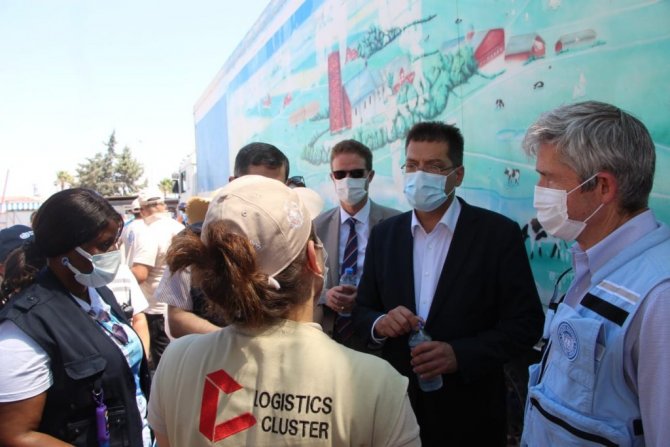 AB'nin Kriz Yönetiminden Sorumlu Komiseri Janez Lenarcic ve beraberindeki heyet açıklamanın ardından BM Yardım Transfer Deposunu inceledi yetkililerden bilgi aldı.