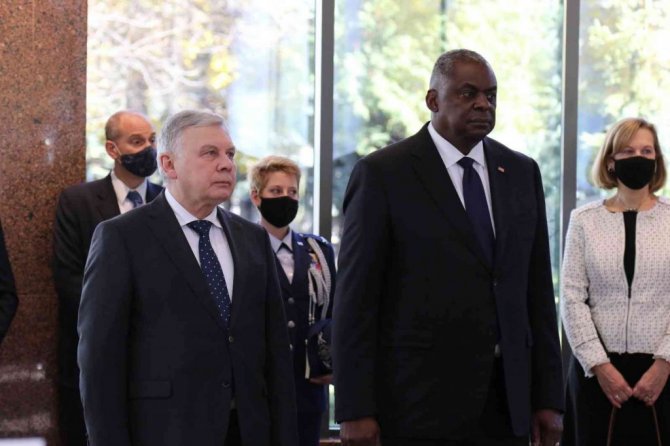 Kırım konusuna da değinen Austin, "Kırım'ın işgalini kınıyoruz. Rusya'yı Ukrayna'nın doğusundaki savaşı durdurmaya, Karadeniz ve Ukrayna sınırlarında düzeni bozmamaya çağırıyoruz. Hiçbir 3. ülke, NATO'ya girme konusunda veto hakkına sahip değildir. Ukrayna gelecekteki dış politikasına karar verme hakkına sahiptir. Doğru yerde olduğumuzu ve Ukrayna'nın kendisini koruyabileceğini göstermek için Ukrayna'ya desteğimiz devam edecek" diye konuştu.