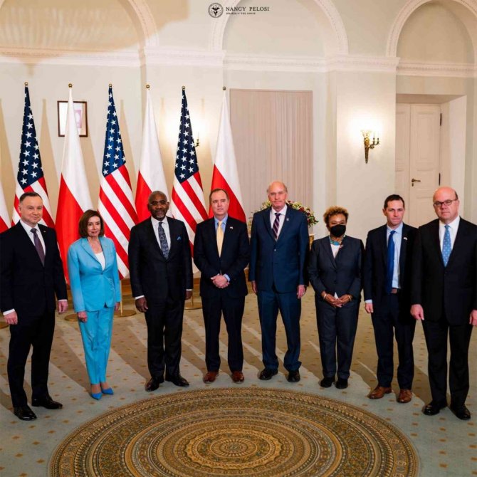 ABD Temsilciler Meclisi Başkanı Nancy Pelosi ile Polonya Devlet Başkanı Andrzej Duda Polonya'nın başkenti Varşova'da bir araya geldi.