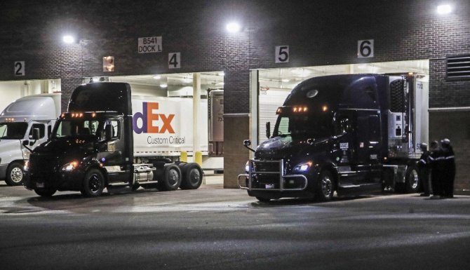 ABD Gıda ve İlaç Dairesinden (FDA) onay alan Pfizer/BioNTech Covid-19 aşısının bulunduğu tırlar Michigan'daki merkezden dağıtım için yola çıktı. Milyonlarca doz aşı, nakliye tesislerine ve havalimanlarına götürülmek üzere sıcaklık kontrollü termal konteynerlere yüklendi.