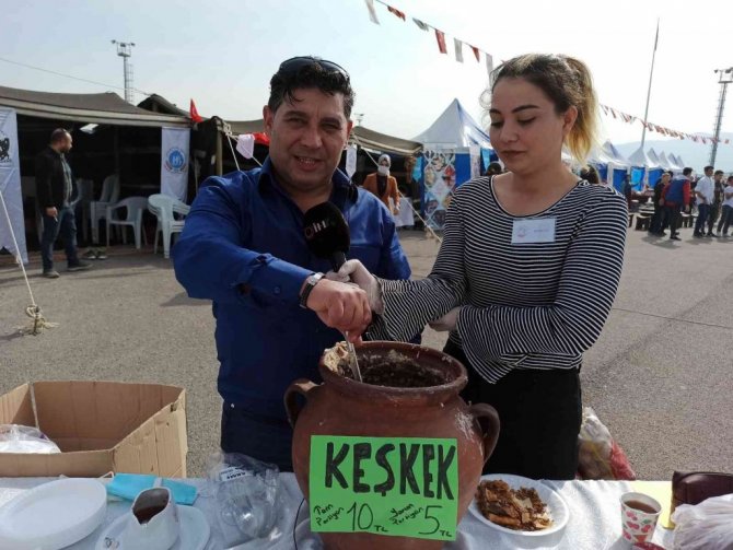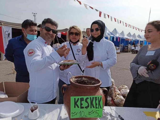 Afyonkarahisar'da, gerçekleştirilen yemek festivaline katılmak için kente gelen ve şehrin ülke genelinde ün salan damak çatlatan lezzeti keşkekten yiyen...