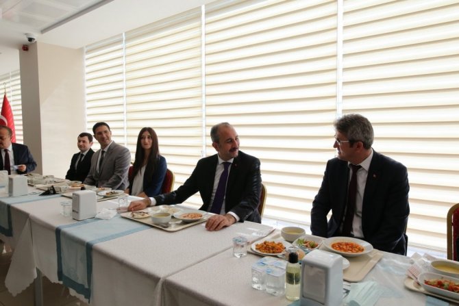 Adalet Bakanı Abdulhamit Gül, Bursa'da bir otelde bölge değerlendirme toplantısına katıldı. Ardından Bölge İdare Mahkemesi ve Bursa Adliyesi'ni ziyaret eden Gül, Bursa Bölge Adliyesinde de personelle yemek yedi. Kendi yemeğini sıraya girerek alan Bakan Gül, personele kısa bir konuşma yaptı. Gül, "Kararlarda hakimlerin savcıların isimleri var. Duruşmalara taraflar geliyor. Süreçlerin bu şekilde başarılı bir şekilde sürdürülmesi bizim çalışanlarımız sayesinde oluyor. Sizler adliyede, kalemin bu anlamda tozunu yutan ve adaletin tecellisi anlamında gece gündüz çalışan arkadaşlarımızsınız. O yüzden hepinize ayrı ayrı teşekkür ediyorum. Sizler ne kadar bu anlamda bu çalışmalarda gayret gösteriyorsanız adalete güven o denli artıyor. Çünkü verileri siz giriyorsunuz, duruşmada tutanağı zapta sizler yazıyorsunuz. Tüm yargısal işlemlerle ilgili esas itibariyle biz bile avukatlık yaptığımızda kalemdeki müdür arkadaşlarımızdan, çalışan arkadaşlarımızdan çok istifade ederdik" dedi.