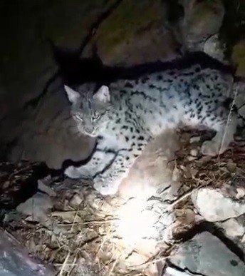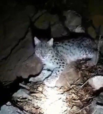 Sivas'ın Gürün ilçesinde nesli tükenme tehlikesi altında olan ve aç kaldığı için köye indiği düşünülen bir vaşak cep telefonu kamerasına yansıdı.