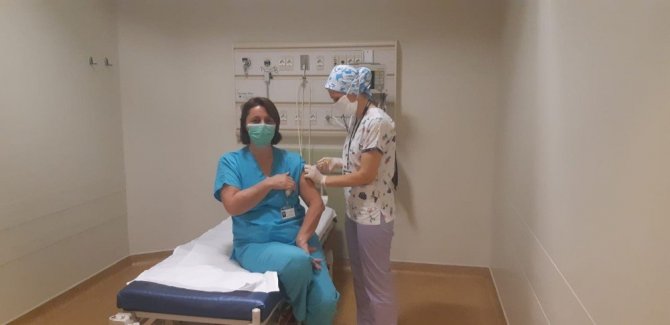 Türkiye'nin dört bir yanında sağlıkçılara uygulanan aşılama Acıbadem Bursa Hastanesinde de başladı. Hastanede çalışan ancak hastalığı geçirmemiş sağlıkçılara tek tek Çin'den getirilen korona virüs aşısı uygulanıyor. Sağlıkçıların ardından risk gruplarına göre aşılamaya devam edilecek.