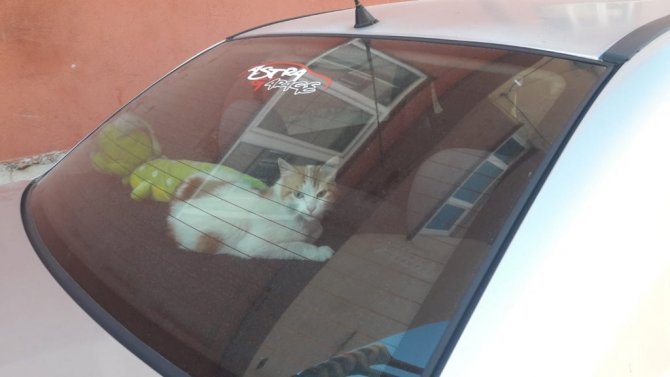 Işıklar Mahallesinde park halindeki aracın içerisinde bir sokak kedisinin uyuduğu görüldü. Durumu şaşkınlıkla karşılayan bir mahalle sakini, aracın anahtarını alarak kediyi serbest bırakmak istedi. Aracın açık kalan penceresinden girerek geceyi içeride uyuyarak geçirdiği tahmin edilen kedi, vatandaşın kapıyı açması sonucu koşarak uzaklaştı. Araç sahibi vatandaş, açık kalan pencerenin hırsız yerine bir kedi tarafından fark edilmesinden dolayı memnun olduğunu belirtti.