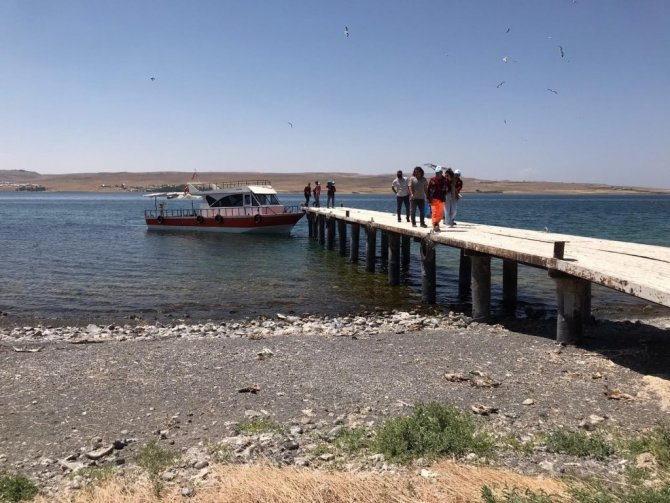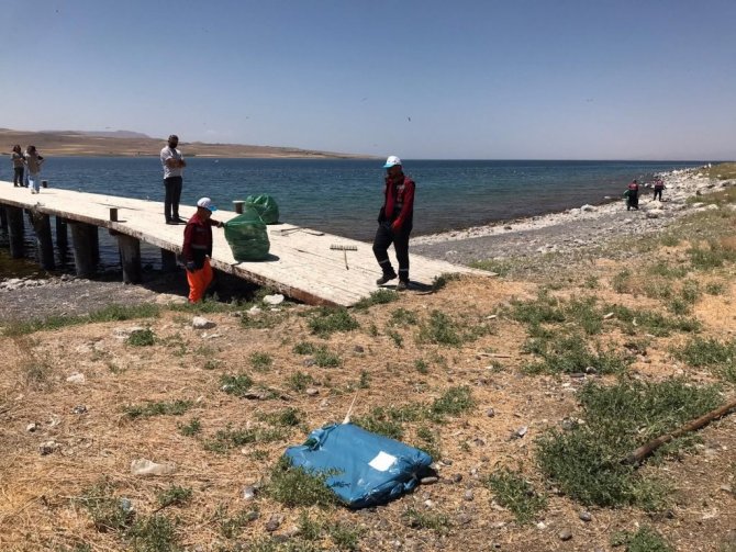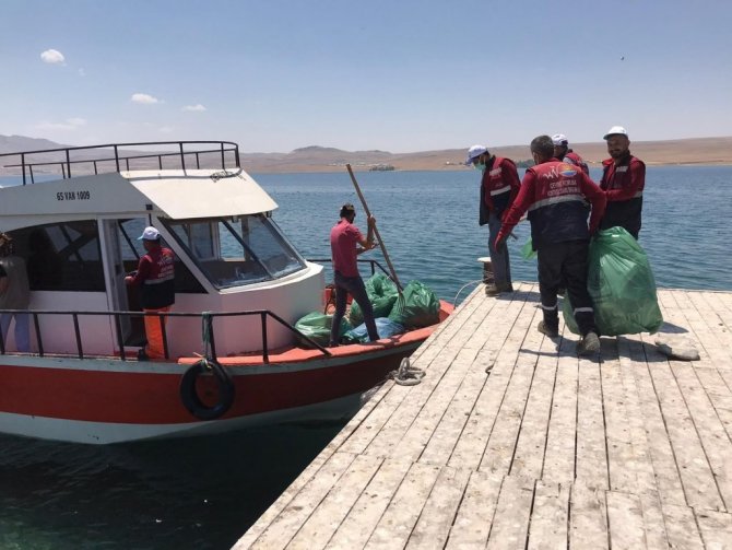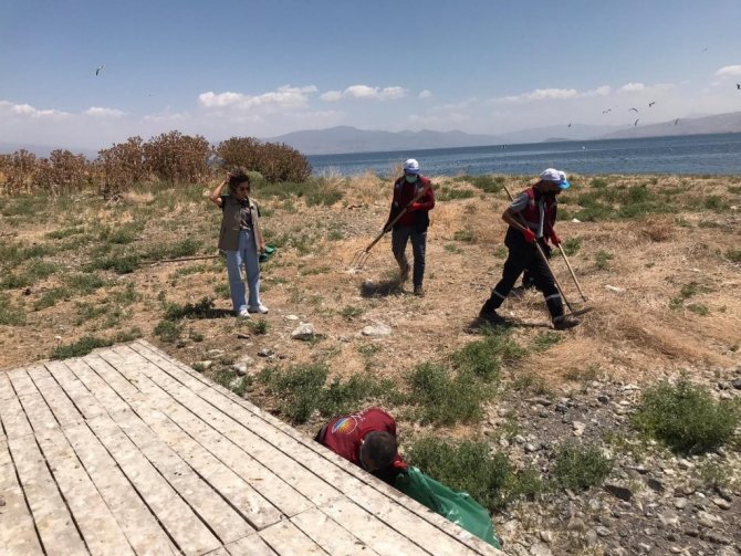 Van Gölü'nde bulunan Adır Adası'nda telef olan ve etrafa koku yayan ölü martılar toplatıldı.