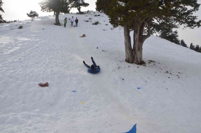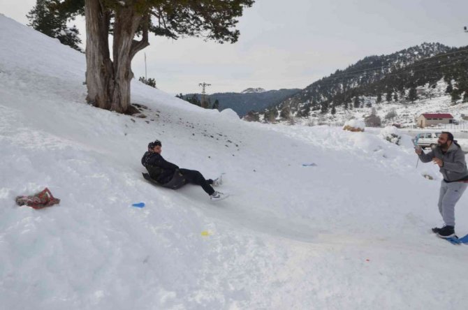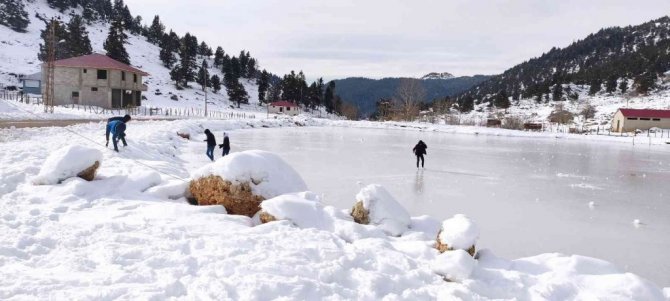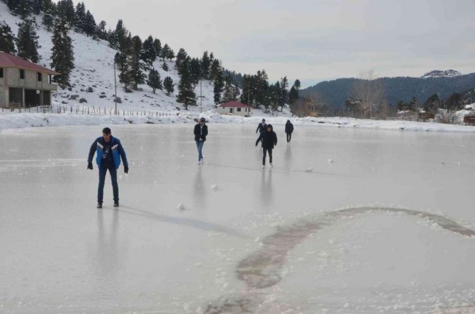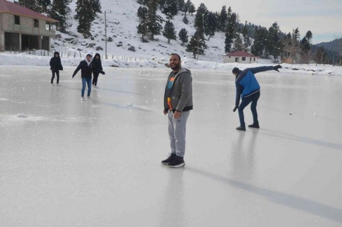 Adana Göller Yaylası buz tutunca eğlence merkezine döndü